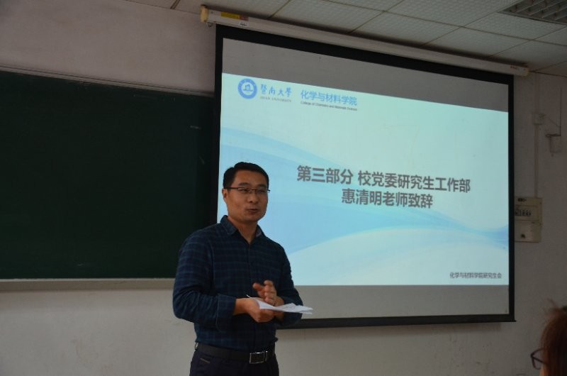 校党委研究生工作部惠清明老师首先致辞。惠清明老师对支持研会工作的诸位老师以及到场的嘉宾们致予诚挚的感谢。同时,惠清明老师回忆起自己工作的情景,以自身事例鼓励同学们要不断前行,为学院和研会的发展贡献自己的力量。惠清明老师还把自己过去的工作心得体会与同学们分享:一是要端正做人做事的态度,坚定初心,砥砺前行;二是要寻找正确的工作方法,做好本职工作,在研会做出有学院特色的活动;三是要处理好学业与工作的关系,老师和同学的关系,做好学校与学院的之间的沟通工作。最后,惠清明老师祝贺mg4355电子线路第三届研究生会成立。