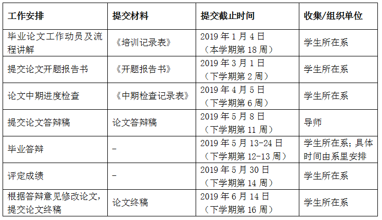 请两系根据学院2019届本科毕业(设计)论文工作安排进度表,结合系里实际,做好本科毕业(设计)论文工作。