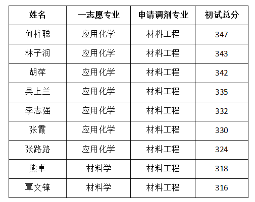 经学生意愿申请、学院审核,按照申请人员初试总分由高到低排序,现公布mg4355电子线路获得2019年材料工程专业硕士研究生院内调剂复试资格的考生名单: