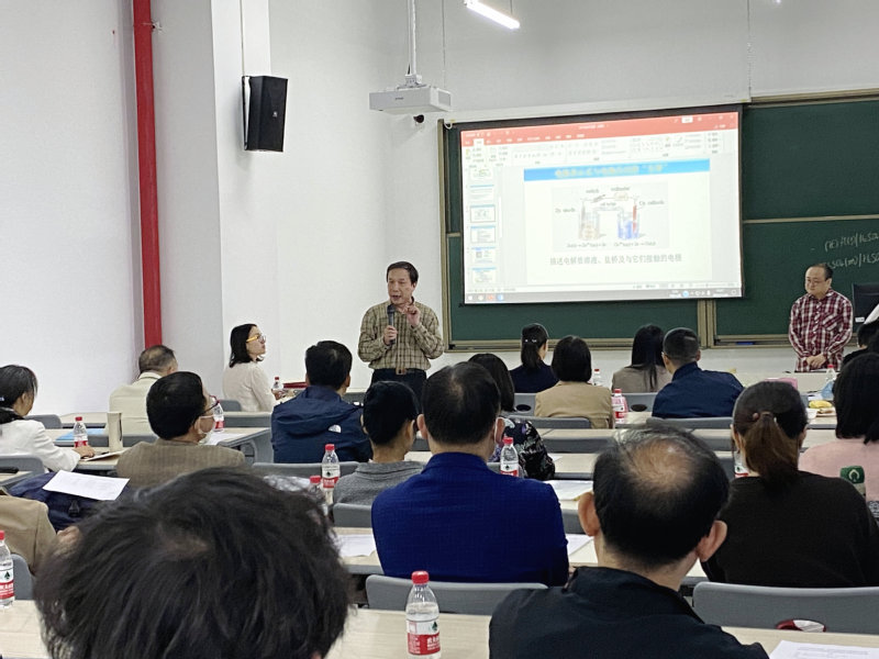 到场观赛的老师们也结合自身教学经历提出建议。张渊明老师指出,教师对待课堂的态度就是学生对待老师和课程的态度,希望新教师提高对教学的重视程度,思考如何更好的引发学生对课程的兴趣。高庆生、刘杰等老师从声音抑扬顿挫、肢体语言、课程思政、科研成果融入教学内容等方面对新教师提出了建议。2021级应用化学专业王奕杰同学作为学生评委表达了对谢默老师的课堂教学的肯定。这也是mg4355官网在教学竞赛过程中首次引入学生评价,以此促进师生互通,师生互动,提升教学质量。
