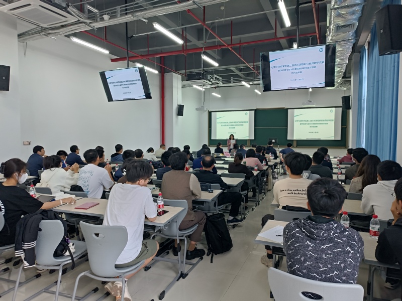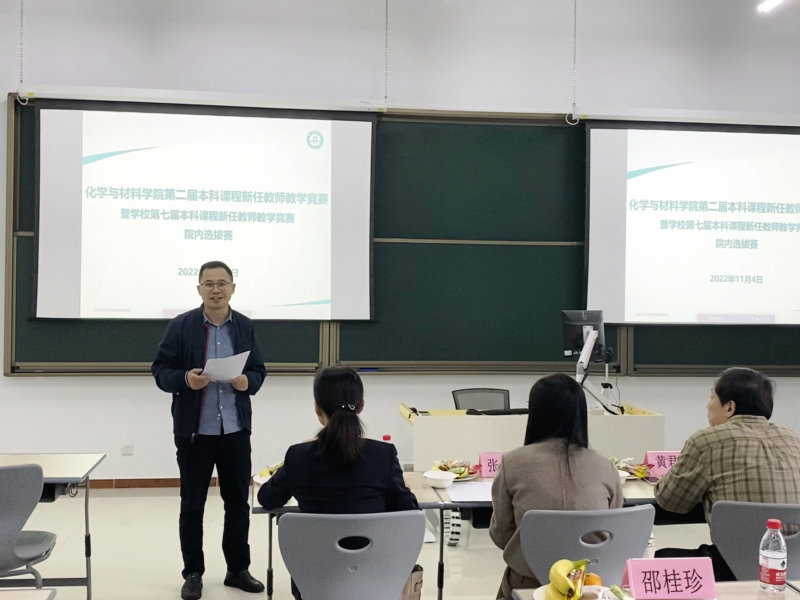 开幕式后,比赛开始,7位新任教师先后上台竞技。竞赛现场,各位选手用精心的教学设计,将复杂深奥的化学与材料学科专业知识以简捷通俗的方式呈现在20分钟的课堂展示中,将“两性一度”的教学目标充分展现给各位评委和嘉宾。