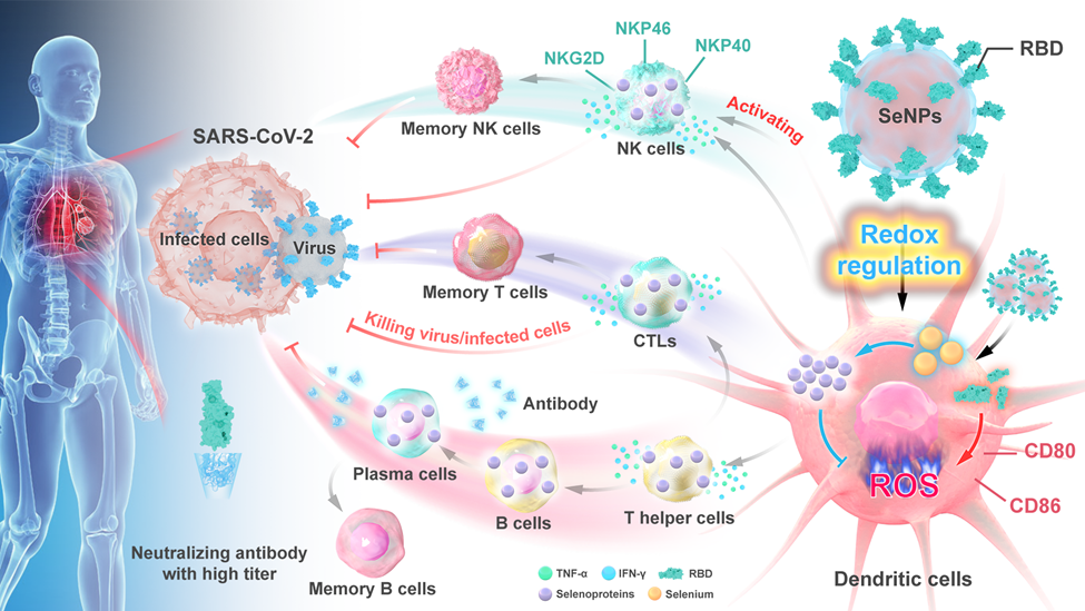 本研究开发的新型功能化纳米硒可有效激活机体细胞和体液免疫对抗新冠病毒感染,同时也为促进后新冠时代机体免疫系统的重建与康复提供一种新的防治策略。